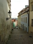 Si in octombrie, chiar daca mie luna asta nu-mi spune niciodata nimic,  m-as duce, ca sa vad cum arata aurul Pragai in culorile fermecate ale toamnei. M-as duce din nou pe dealul Petrin ca sa vad tot orasul scaldat in galben si rosu, de sus, din micul turn, replica a celebrului turn Eiffel. M-as amuza din nou in oglinzile strambacioase din labirintul de langa turn, m-as admira mai mult in cea care ma arata subtire si inalta 😀 si apoi as cobori catre Orasul Mic, care are farmecul lui, dar pentru mine are meritul de a ma duce pe Nerudova, cea mai frumoasa strada din Praga. Acolo as admira din nou frontispiciile cu animale, pasari, sori si insemne artistice care inlocuiau inainte numerele seci si impersonale de azi ale caselor boieresti, m-as bucura din nou cand as vedea drapelul Romaniei fluturand la poarta Palatului Morzin si as reciti placa pe care se povesteste despre vizita lui Mihai Viteazul la Praga, in 1601. Apoi as urca pe scarile care duc, in sens invers celor din luna mai :), spre Castelul Praghez, scari strajuite de lampadare cochete, m-as opri la un restaurant de familie si as manca Svickova na smetane, mancarea mea ceheasca preferata (sunt sigura ca al meu sot ar manca niste alimente numite Budweiser si Pilsner Urquell, cica ar fi cele mai bune din lume, dar asta e alta poveste 🙂 ).